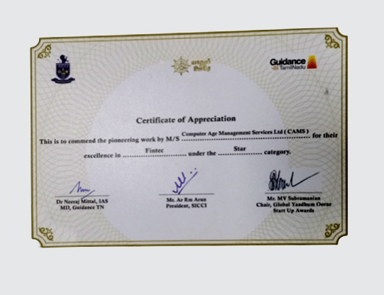 Guidance Bureau by South Indian Chamber of Commerce has recognised CAMS for the work we have done in FinTech over the years. The nomination has been submitted by an external SME associated with the initiative who has great appreciation of how CAMS, a Chennai Headquartered company has made a difference to Financial Services enabled by Technology.