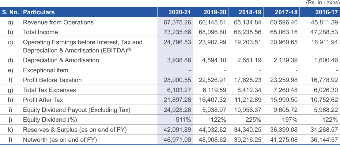 @ Ind AS 116 became effective from April 01, 2019; EBITDA for FY 2019-20 and FY 2020-21 are computed disregarding Ind AS 116 impact. Other income has been excluded from Earnings for EBITDA calculation.