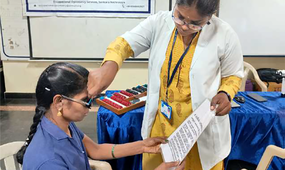 In the healthcare sector, we supported the Occupational Optometry Services Wing, Sankara Nethralaya (SN), and conducted 37 camps across Tamil Nadu and Kerala. These camps benefited 3,272 unorganised sector workers, with 2,570 receiving new glasses, including refractive safety eyewear, tints, and coatings to manage occupational challenges. Additionally, 710 workers were referred for further examination at a tertiary eye hospital. The camps catered to workers from various occupations, such as welders, sculptors, saltpan workers, fishermen, and painters/ carpenters, who faced hazards like flying particles, radiation, and dust. The safety eyewear provided included refractive correction for improved visual performance and safety.